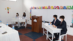 Durante el evento, los estudiantes demostraron su destreza en el uso de los idiomas inglés y español al debatir apasionadamente sobre dos temas de relevancia actual: la inteligencia artificial y su papel como recurso indispensable en las aulas, así como la controversial cuestión de la legalización de las drogas y su posible relación con la inseguridad ciudadana.