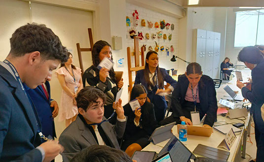 Los participantes demostraron un alto nivel de compromiso y habilidades de liderazgo, abordando temas globales con pasión y profesionalismo. ¡Felicitaciones a todos los delegados por su excelente desempeño!